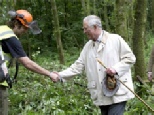 Our Patron, H.R.H. Prince Charles, meets RSPBGS volunteers during tree felling…..